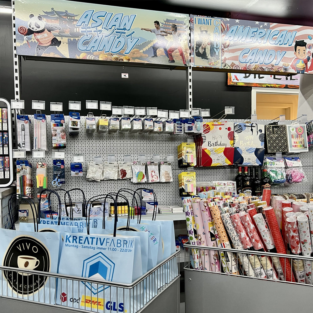 Von Geschenkpapier bis hin zu internationalen Snacks – bei uns findest du eine breite Auswahl für den täglichen Bedarf. Entdecke Schreibwaren, Getränke und unsere nostalgische Süßigkeiten-Theke mit Oldschool-Candy. Ob für spontane Anlässe oder den kleinen Genuss zwischendurch – hier wirst du fündig!